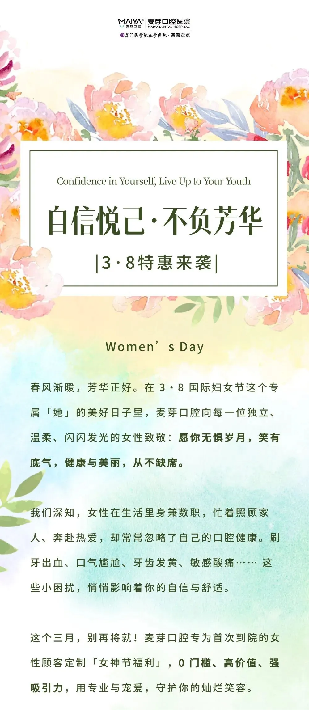当前位置:首页>美女资讯>3・8 女神节宠粉!首次来院,这几项全免费!