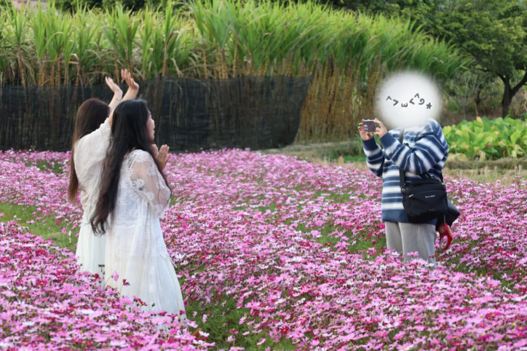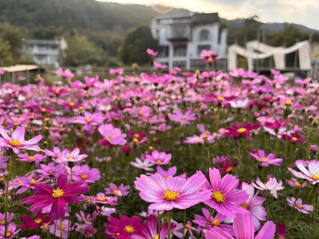 · 花海漫步:免费入园!闯入铺天盖地的格桑花田,粉白相间的花浪与远山、稻田相映成趣,每一步都踩在春天的琴键上。