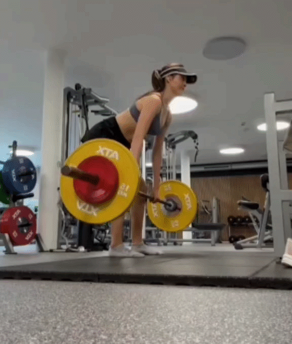 动作二:杠铃半程硬拉主要训练:臀大肌、腘绳肌、竖脊肌
