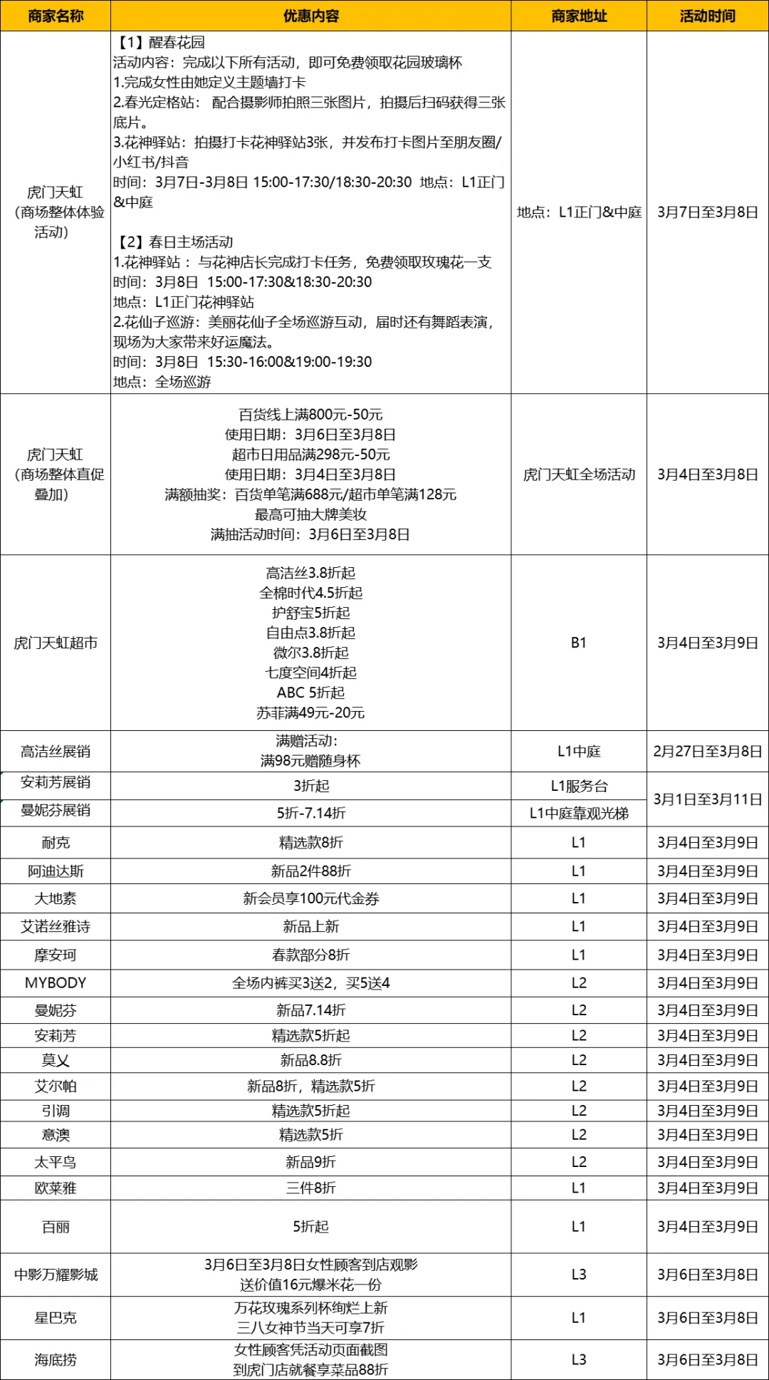 虎门“女神节”海量福利来袭!买赠、满减,还有抽奖、免费领……