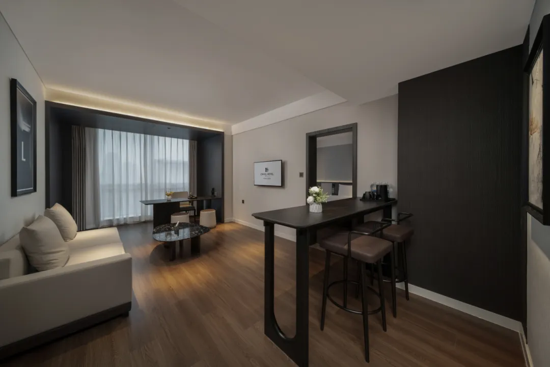 THE ONE•西餐厅位于龙泉国际大酒店一楼,酒店西餐厅以低调却奢华的现代设计诠释着优雅。步入其中,温暖的环境灯光宛如一首光影交织的即兴诗篇。