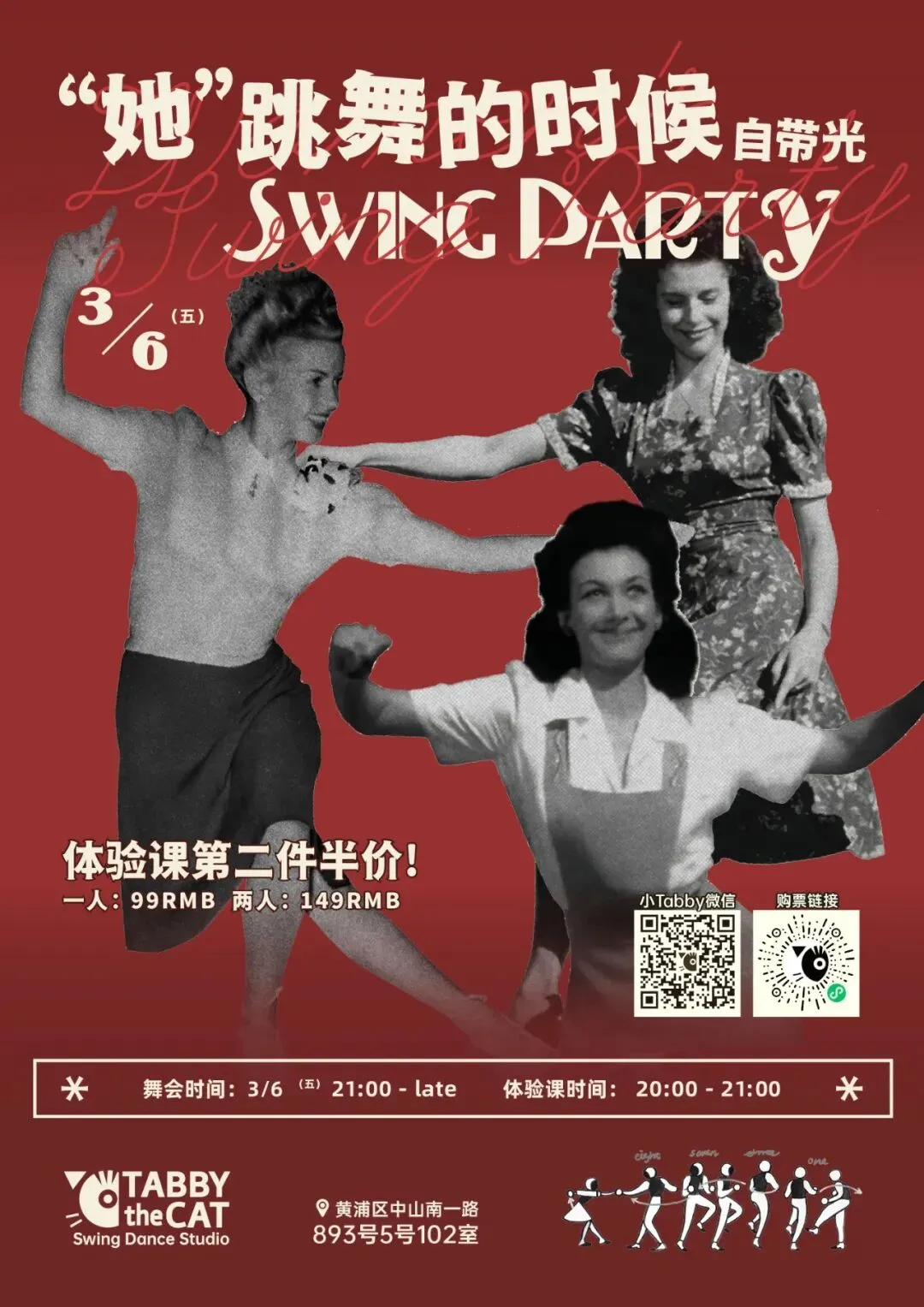 这是一个属于所有舞者的夜晚——无论你是谁,来自哪里,以什么样的身份生活,只要你热爱摇摆的节奏,这个舞池就是你的归属。女神节的意义,从不是被框定的庆祝,而是一群自由灵魂选择在同一片地板上,用汗水和笑声重写"特别"的定义。今晚,我们不为标签起舞,只为那个听到爵士乐就忍不住动起来的自己。带上你的舞鞋,或者赤脚踩上地板,来和我们一起——让复古的节拍,成为当下最鲜活的宣言。