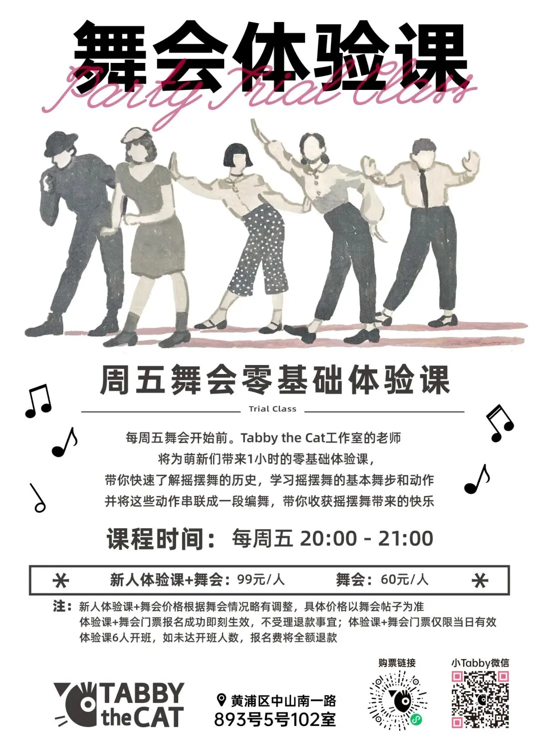 🎶零基础体验课无需自带舞伴,舞伴会在现场随机匹配并轮换。学习完体验课的编舞,我们将为大家拍摄一段视频,记录你的学习成果。