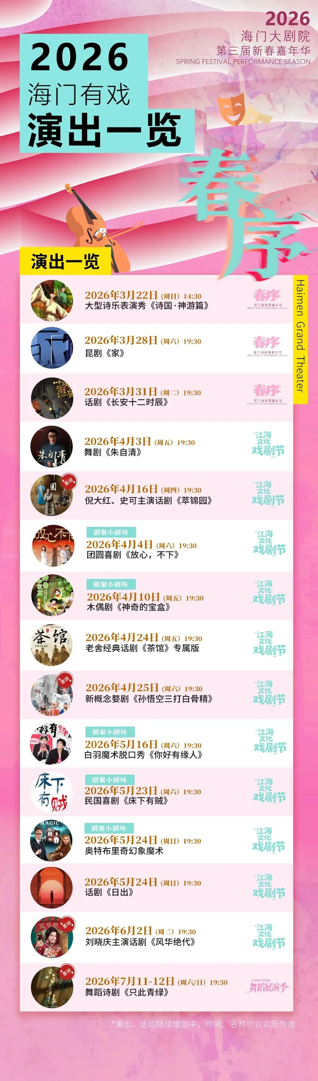 注:演出相关信息均由演出团提供