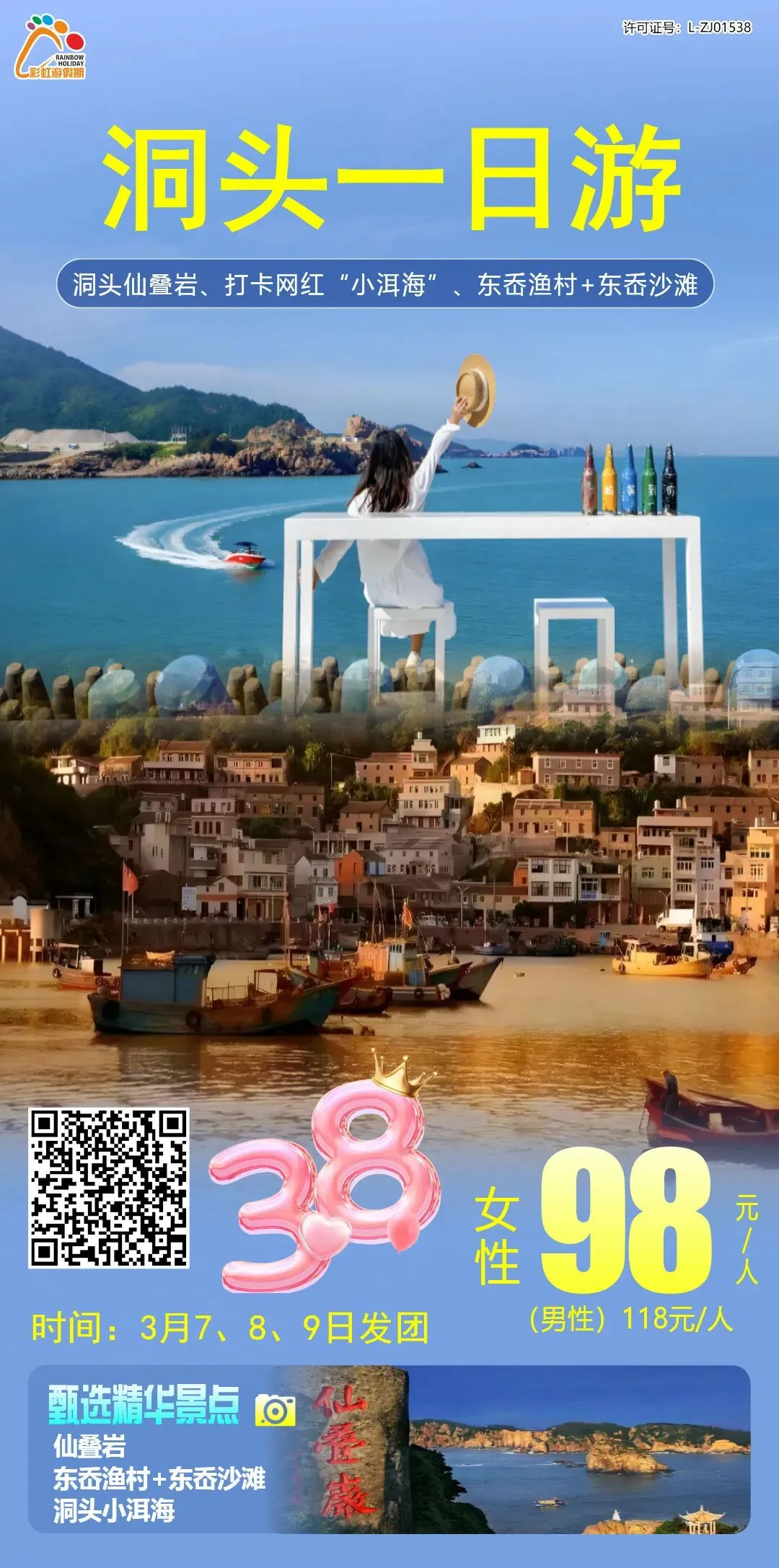 4、【三八节活动】—— 洞头仙叠岩、打卡网红“小洱海”、东岙渔村+东岙沙滩纯玩1日游