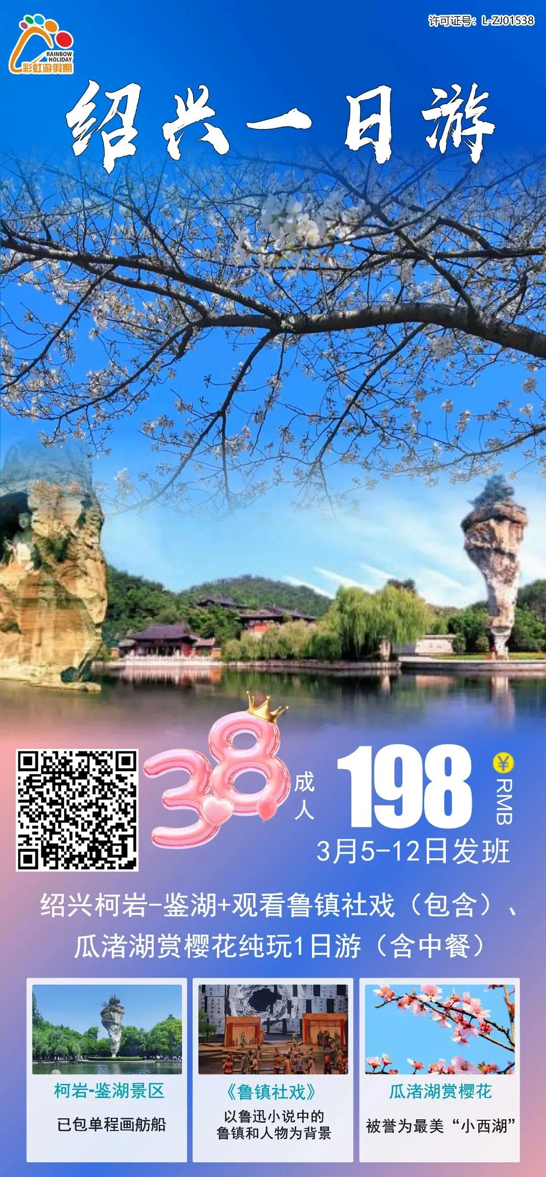 5、【三八节活动】—— 绍兴柯岩-鉴湖+观看鲁镇社戏(包含)+瓜渚湖赏樱花纯玩1日游(含中餐)