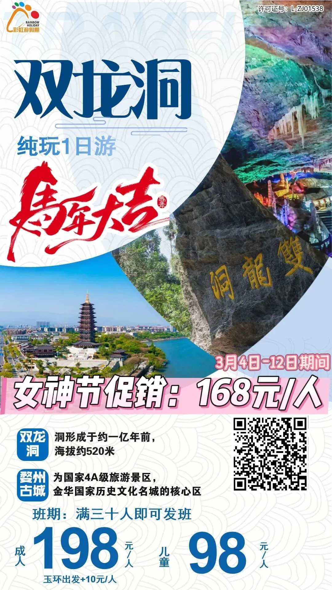 6、【女神节特惠】【探访神奇地下溶洞景观】——金华双龙洞、婺州古城纯玩1日游