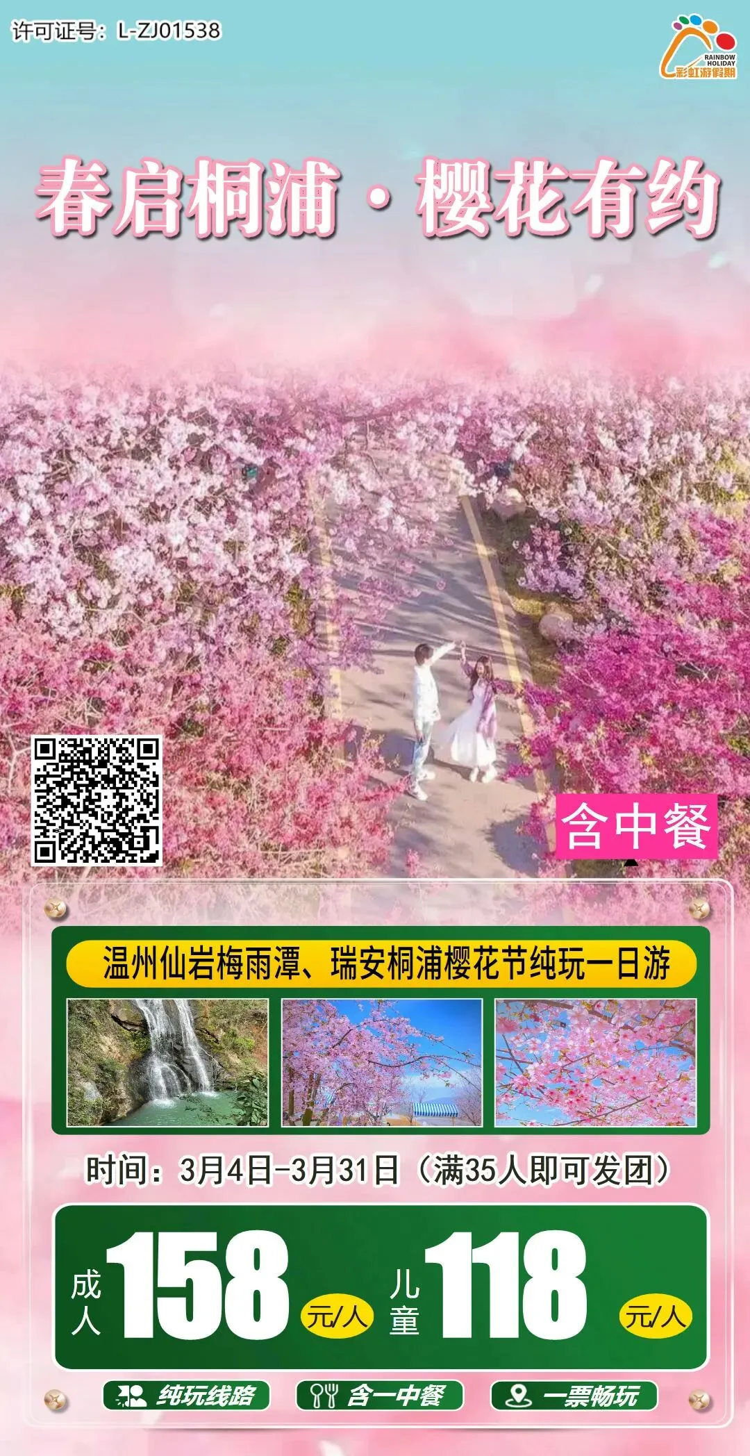 8、【春启桐浦·樱花有约】 温州仙岩梅雨潭、瑞安桐浦樱花节(赏醉美早樱)纯玩一日游(含中餐)