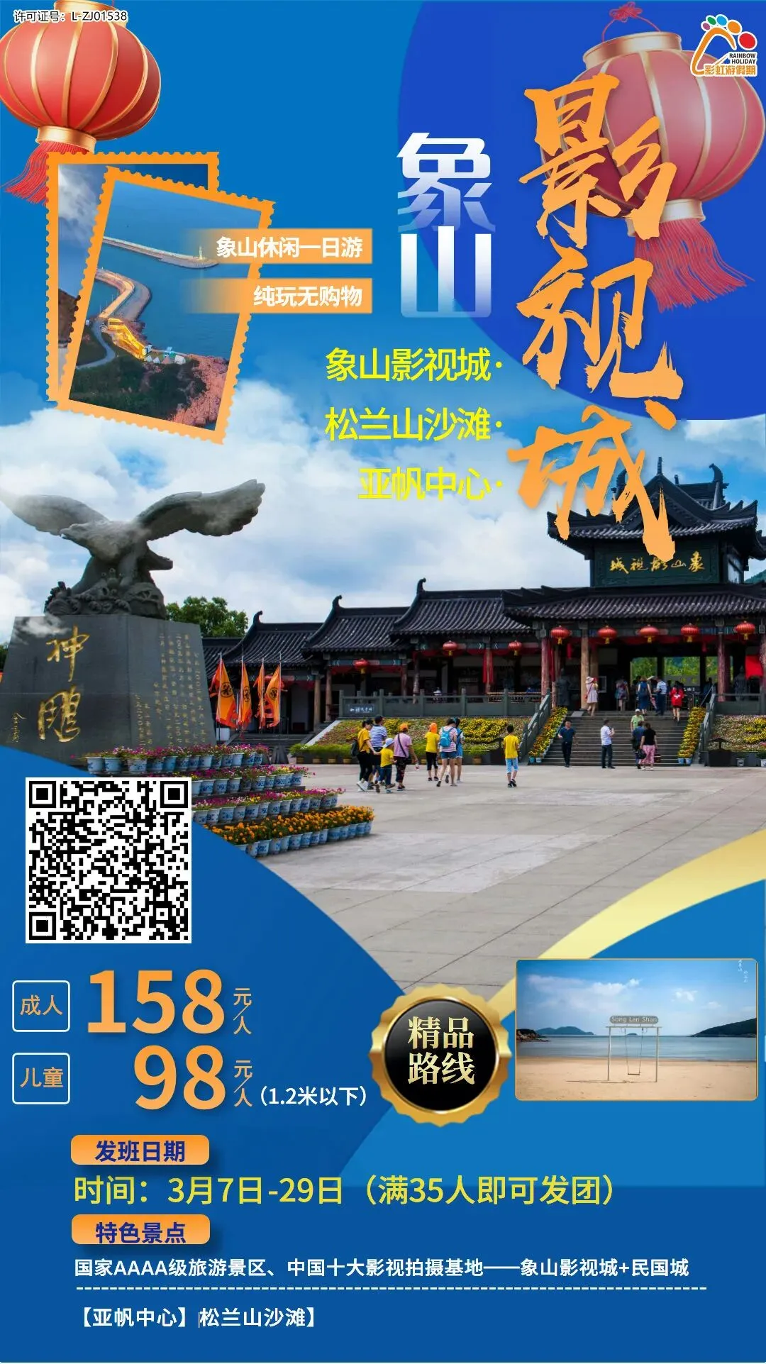 9、【三月特惠】——象山影视城、松兰山沙滩纯玩一日游
