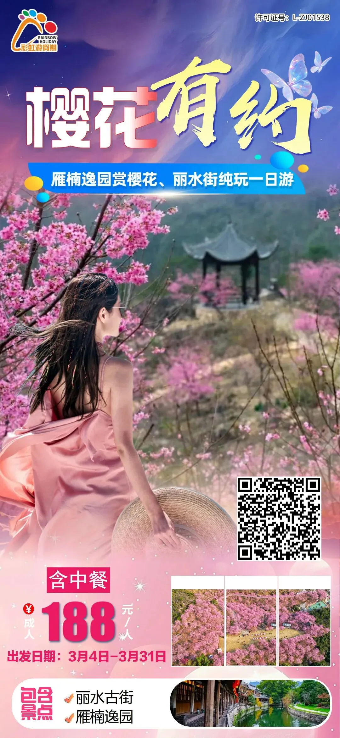 10、【樱花有约】——永嘉楠溪江网红拍照打卡圣地—雁楠逸园赏樱花、丽水街纯玩一日游(含中餐)