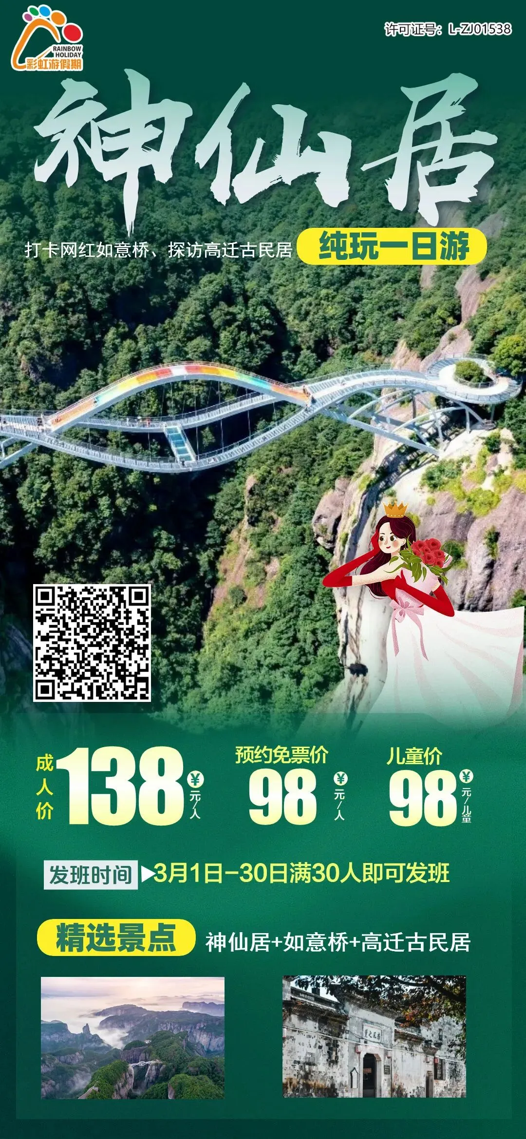 11、台州王牌·国家5A风景区—— 仙居神仙居、打卡网红如意桥、探访高迁古民居一日游