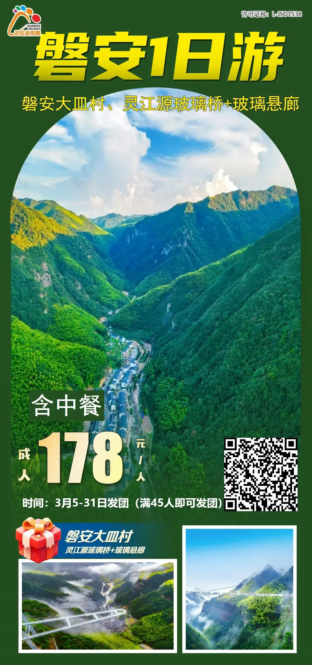 12、【三月活动】——磐安大皿村、灵江源玻璃桥+玻璃悬廊1日游(含中餐)