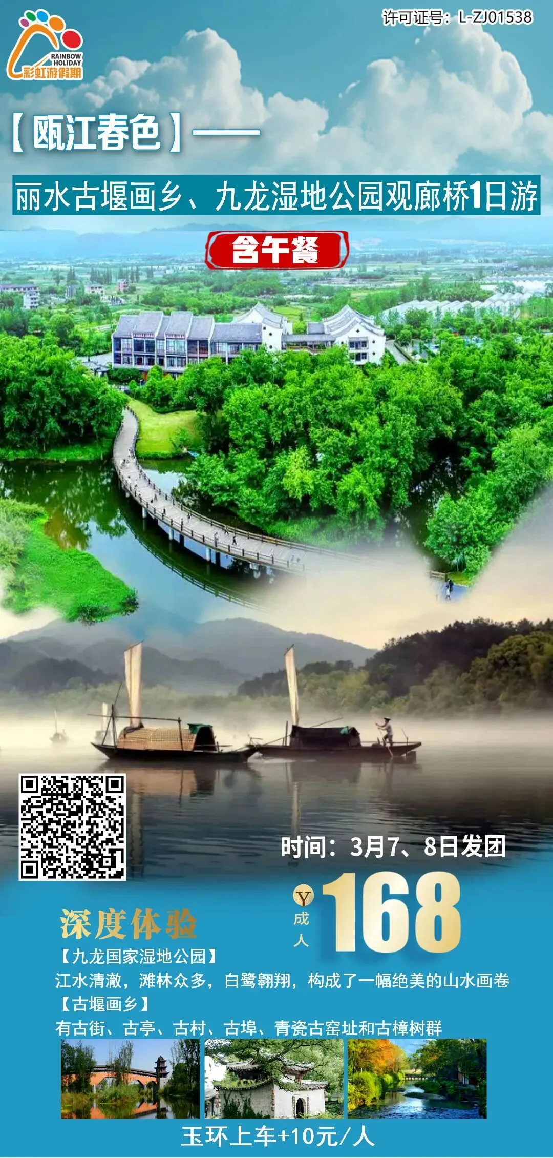 13、【瓯江春色】——丽水古堰画乡、九龙湿地公园观廊桥1日游