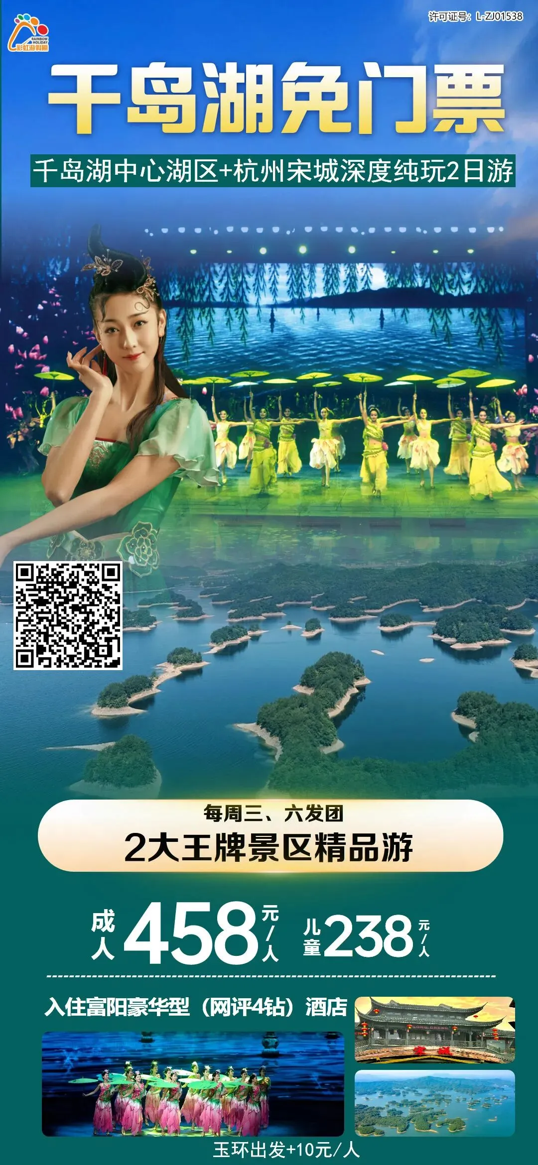 7、【三月大促销,千岛湖免门票,2大王牌景区精品游】—— 千岛湖中心湖区+杭州宋城深度纯玩2日游(升级入住网评4钻酒店)