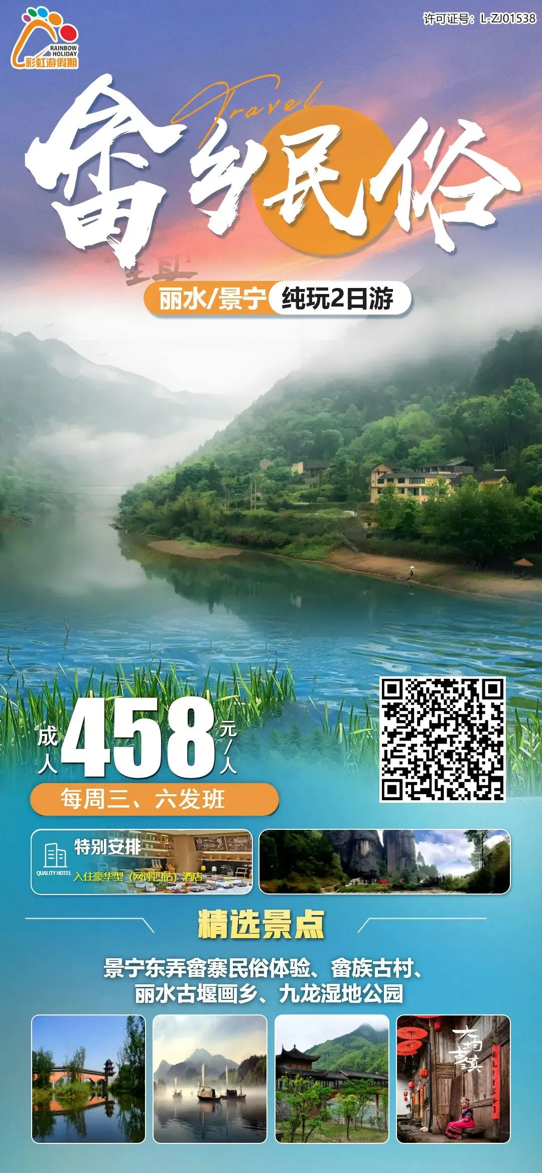 12、【畲乡民俗】——景宁畲乡古村旅拍、畲族婚嫁体验、丽水古堰画乡、九龙湿地公园纯玩2日游(入住网评4钻酒店)