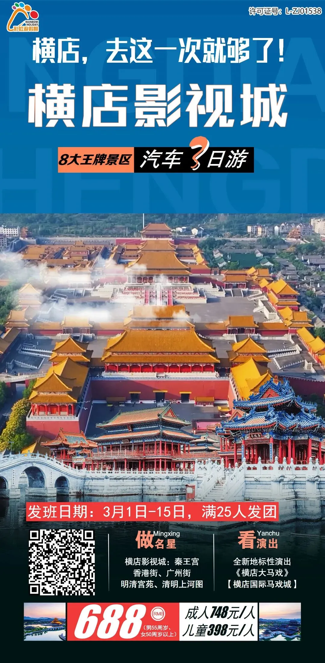 2、横店,去这一次就够了!【璀璨双夜景·8大王牌景区·一票玩遍“大横国”】 横店影视城深度体验3日游(含2早3正餐)