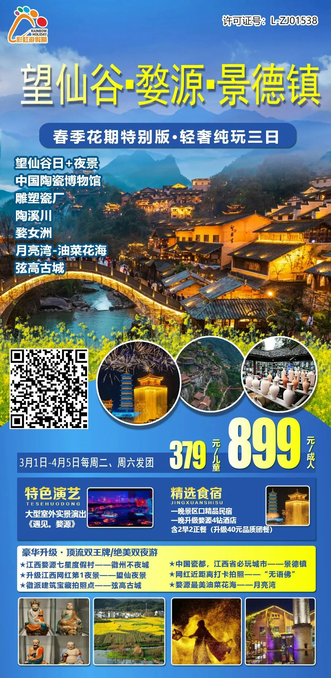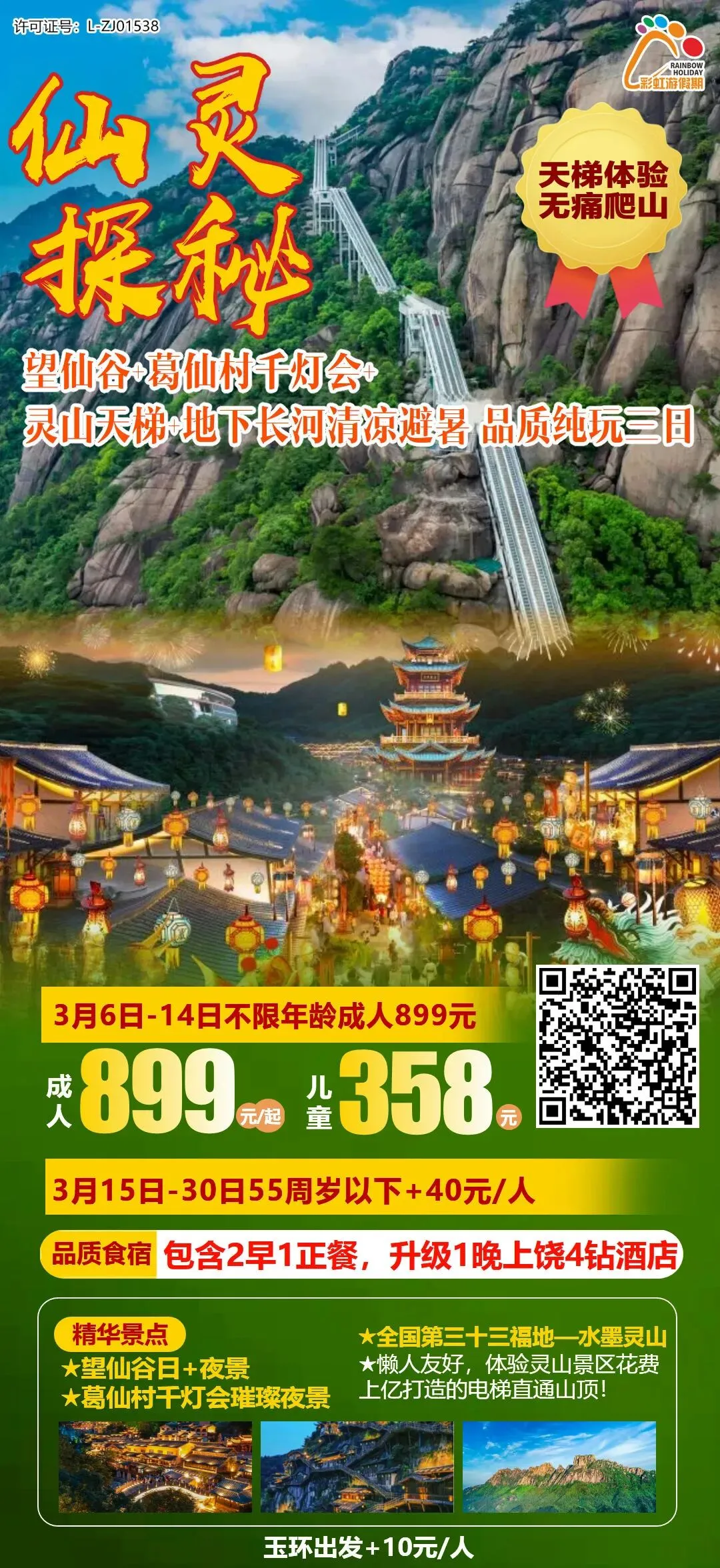 12、【春季爆款特惠·仙灵探秘】 江西葛仙山踏春·葛仙村夜景千灯会·望仙谷日景+夜景·灵山云端天梯 纯玩三日游(一价全含无自费)