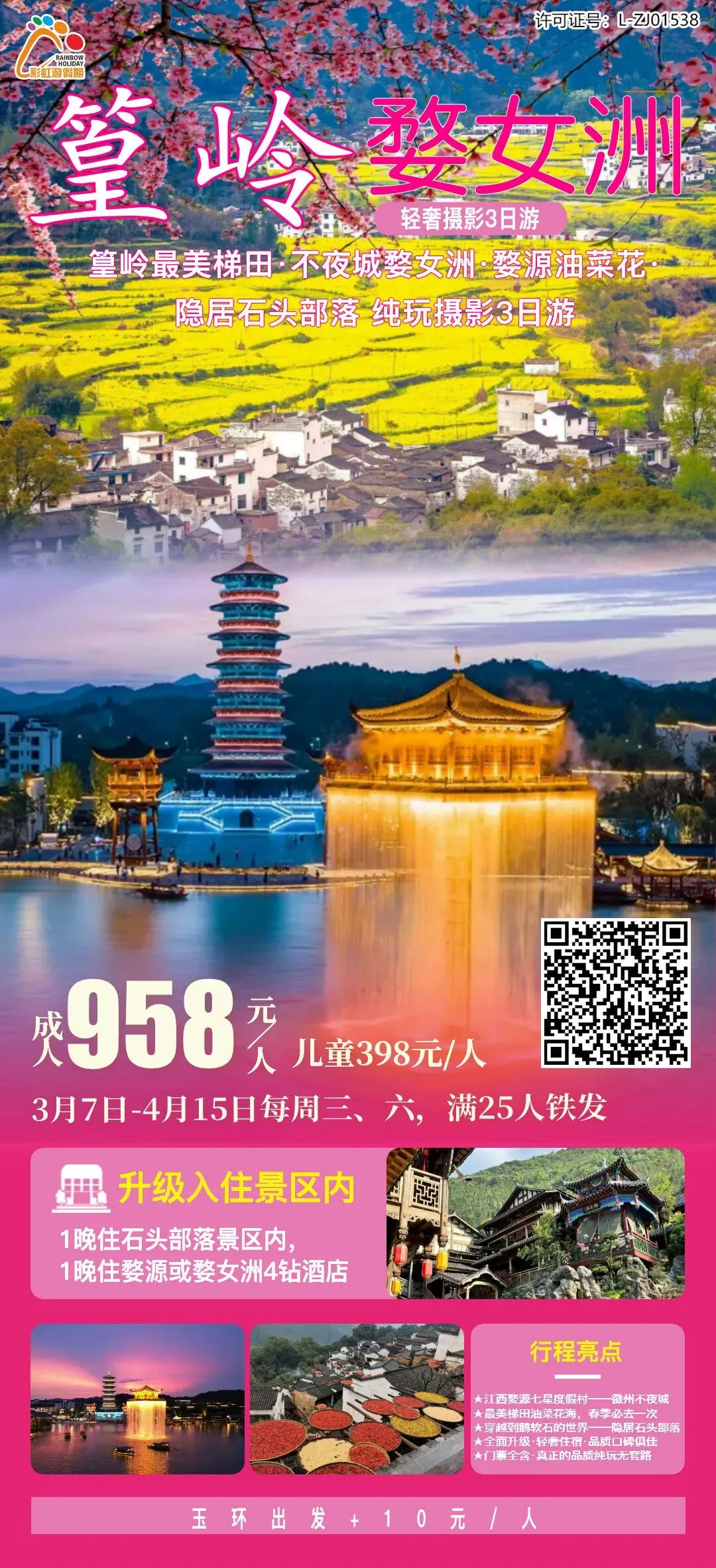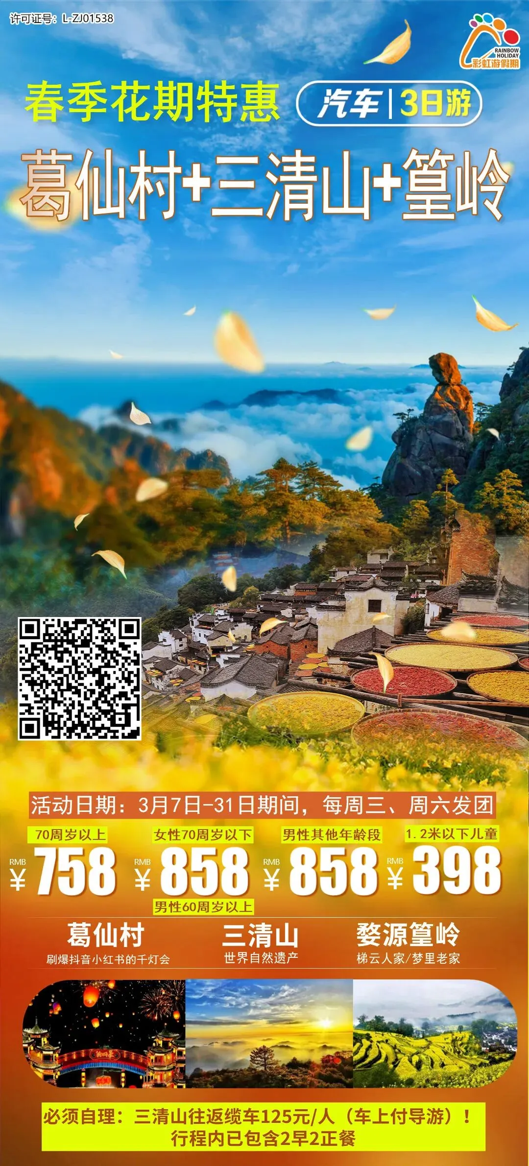 8、【春季花期特惠●三大王牌超级组合】葛仙村+三清山+婺源篁岭 品质纯玩三日游