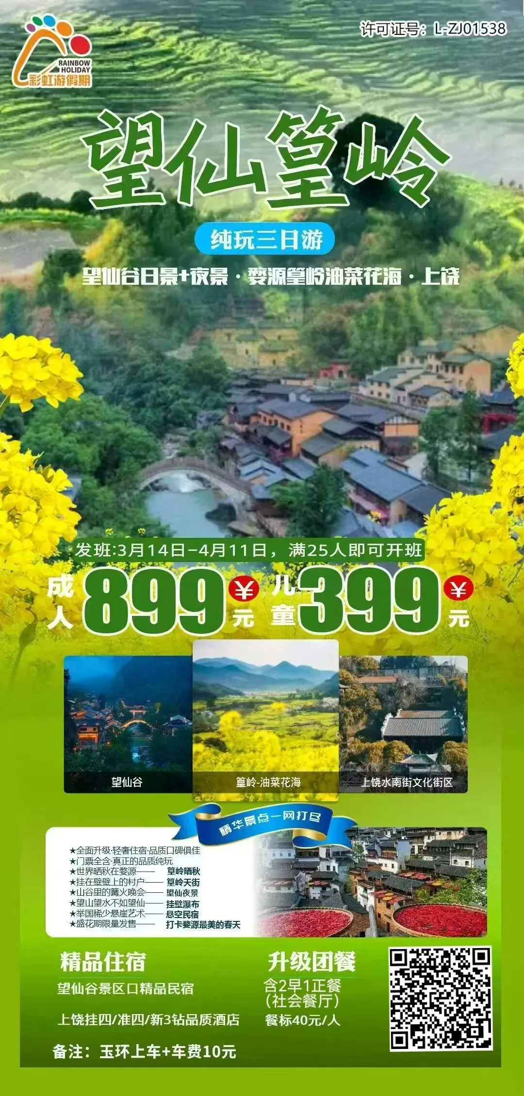 10、【花期爆款·望仙篁岭·梯田油菜花】 望仙谷日景+夜景·婺源篁岭油菜花海·上饶·四星住宿纯玩三日游
