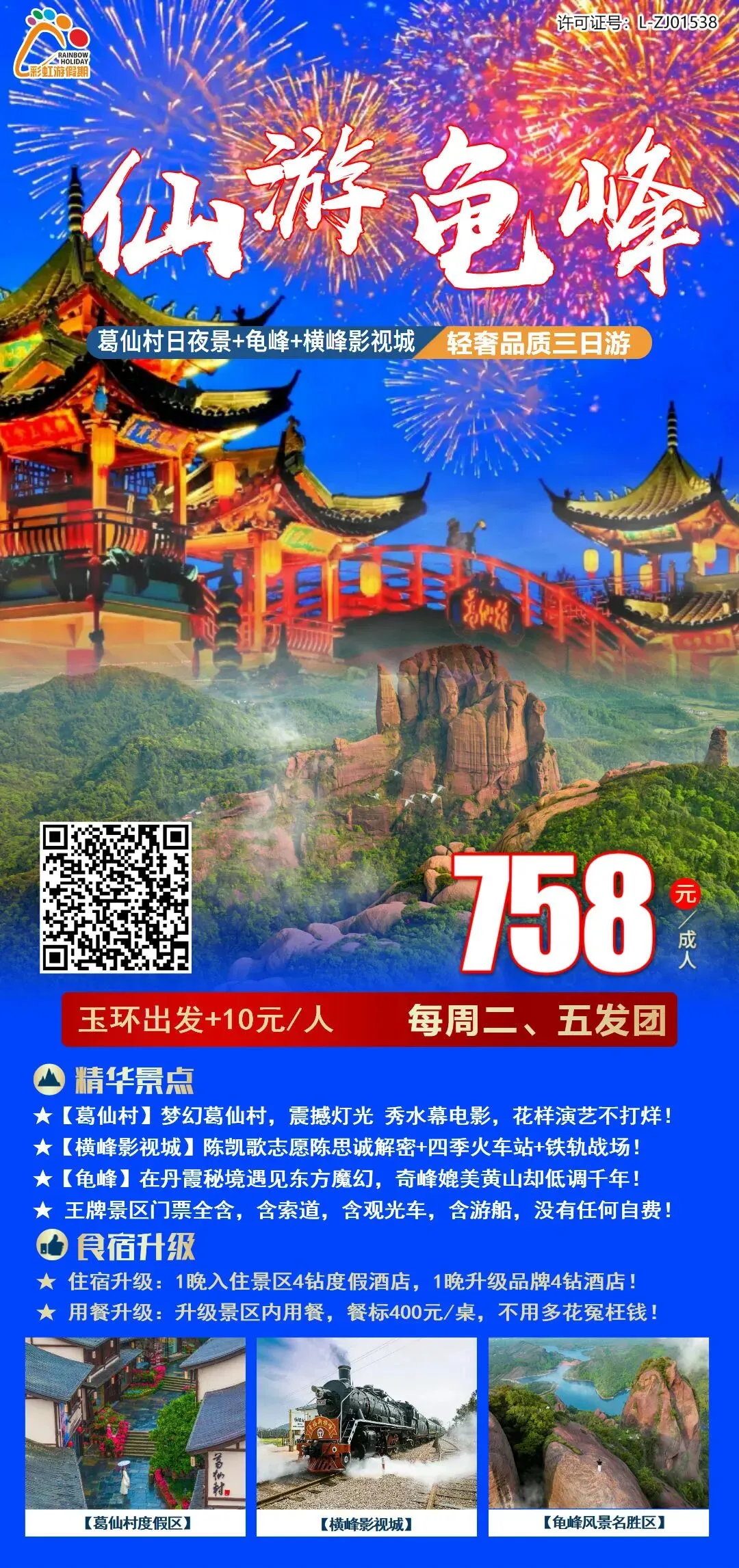 11、女神节特惠【仙游龟峰】葛仙村日夜景+丹霞龟峰+横峰影视城+上饶 轻奢品质三日游