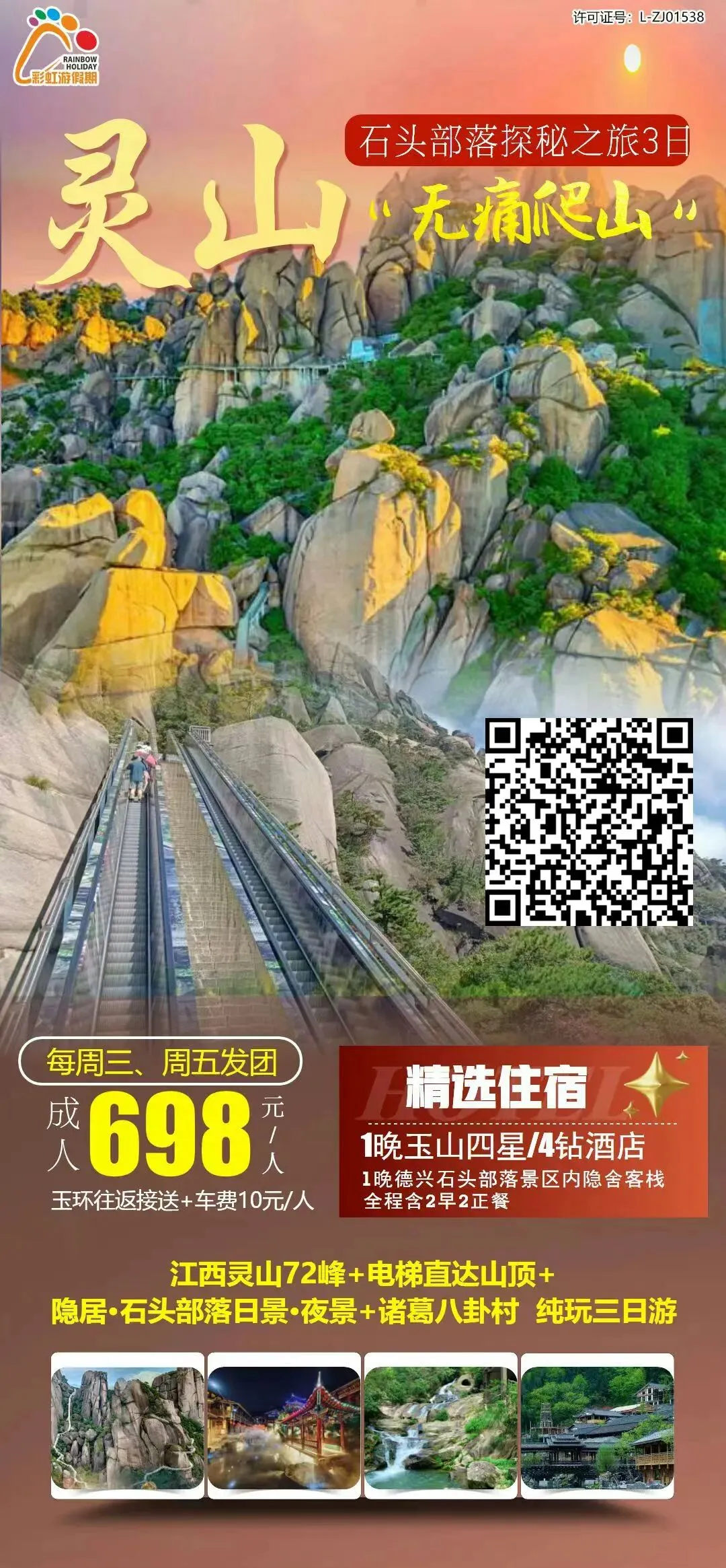 13、【灵山“无痛爬山”VS石头部落探秘之旅】 江西灵山72峰+电梯直达山顶+隐居·石头部落日景·夜景+诸葛八卦村 纯玩三日游