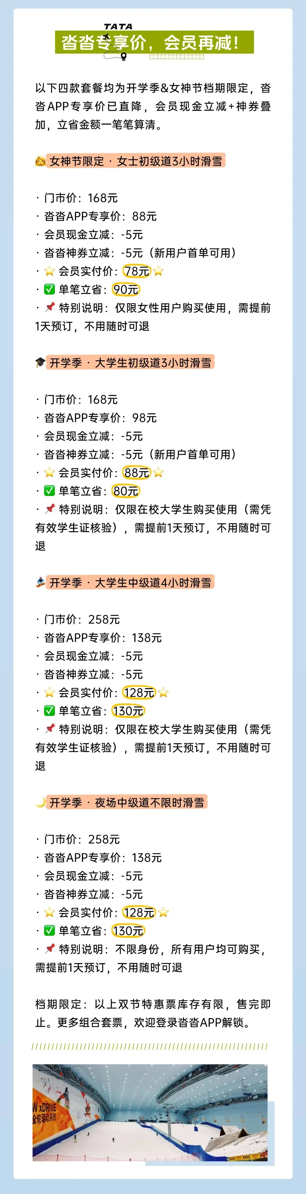 当前位置:首页>美女资讯>女神节遇上开学季:热雪奇迹滑雪低至78元,沓沓APP宠粉福利重磅来袭!