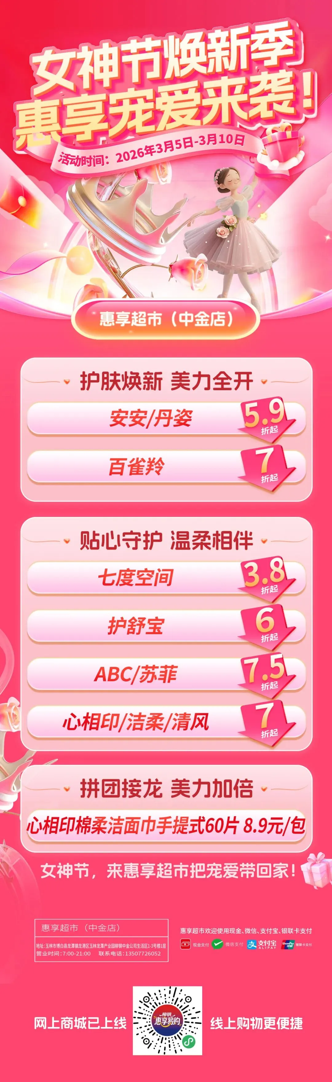 当前位置:首页>美女资讯>惠享超市中金店“女神节焕新季 · 惠享宠爱来袭!”商品促销活动