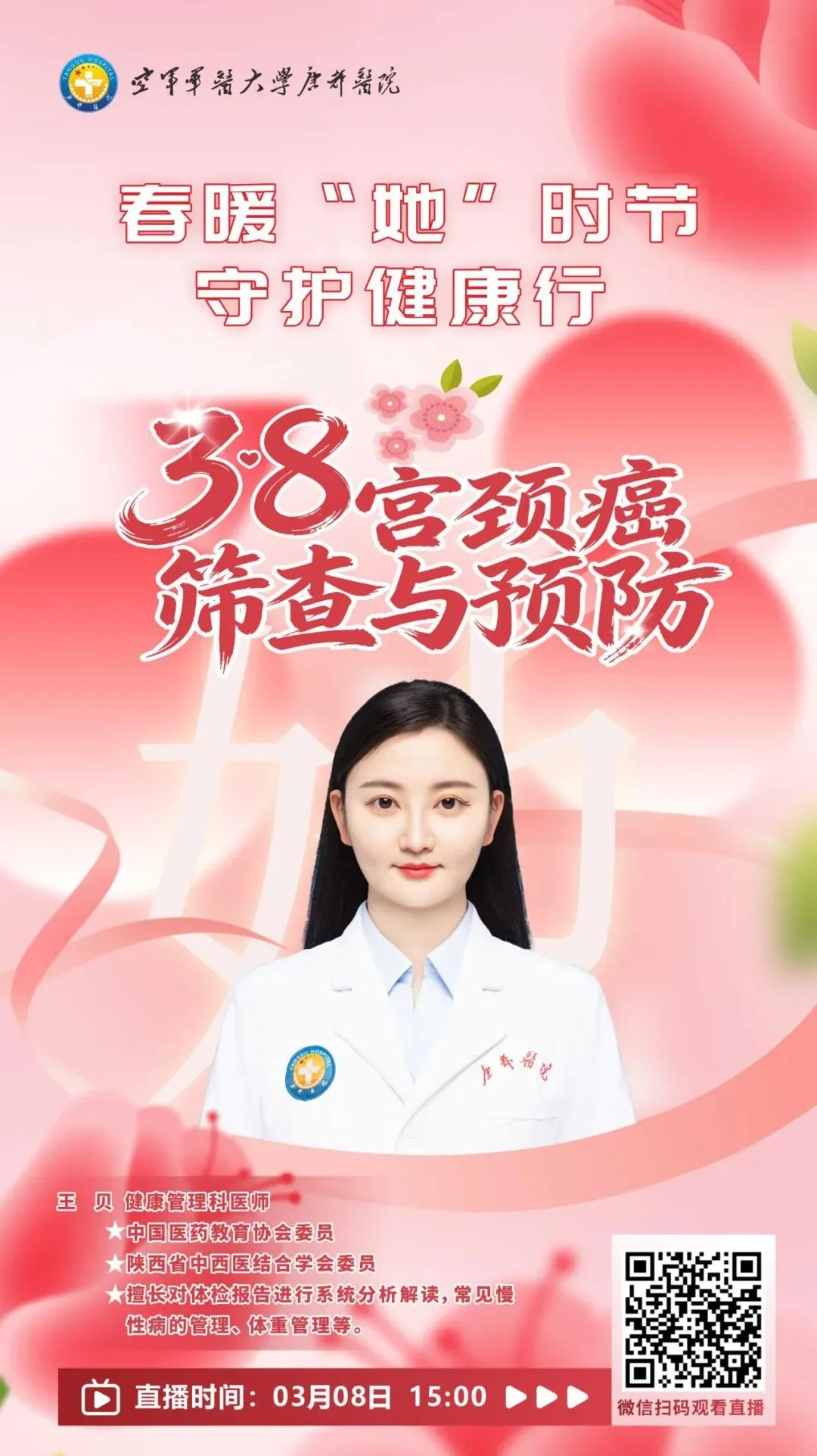 作为守护大众健康者,空军军医大学唐都医院健康管理科始终以早筛查、早诊断、早干预、早治疗为理念,聚焦女性全生命周期健康需求,深耕两癌防护(妇科筛查、乳腺健康)、肥胖与慢病管理等服务,用专业、规范与贴心,为女性健康保驾护航。