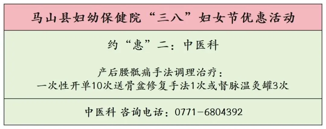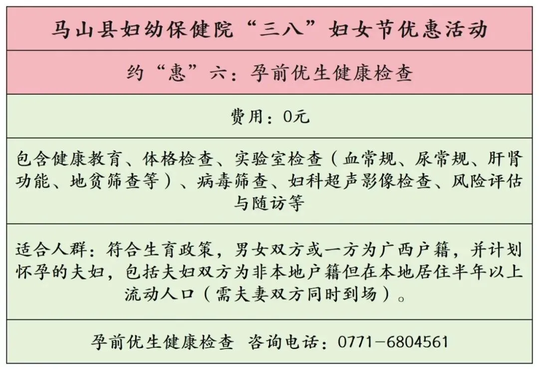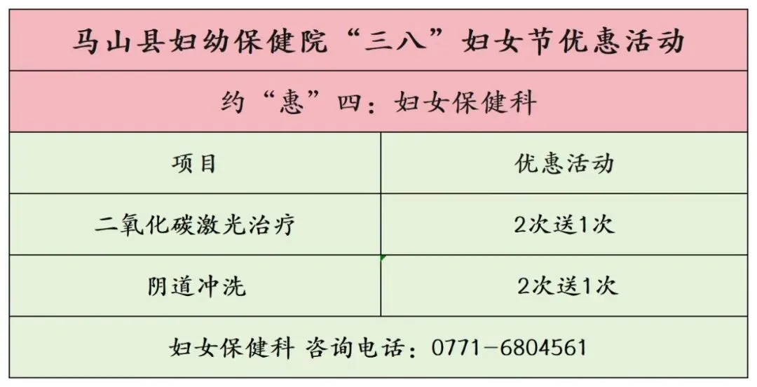 当前位置:首页>美女资讯>【约“惠”女神节】马山县妇幼保健院“三八”妇女节优惠活动,致敬女性力量!