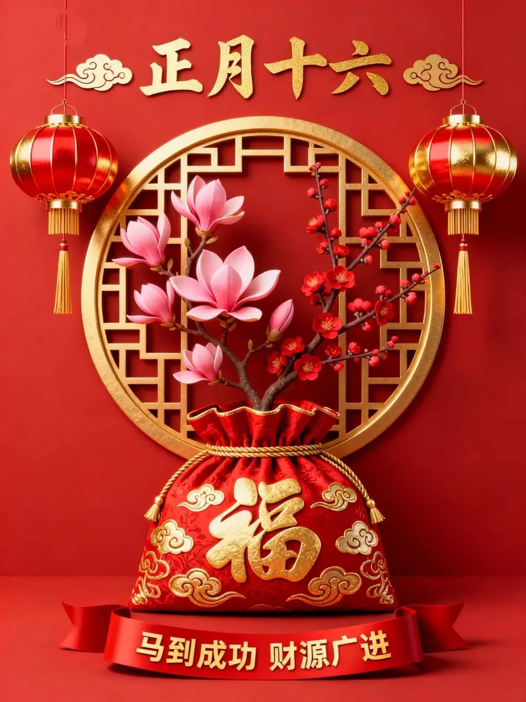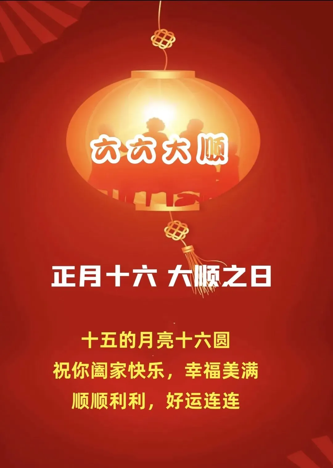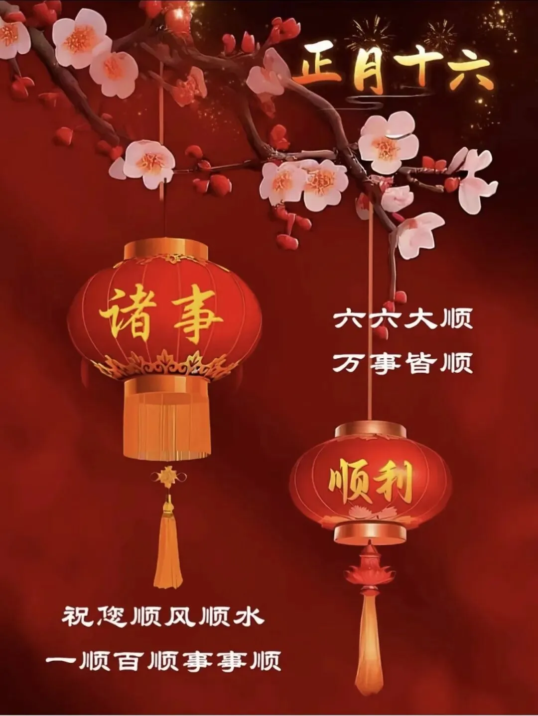 正月十六送你百种祝福,一种心愿,愿你快乐。外加九十九种祝愿,愿你好运连连、吉祥如意。幸福安康、平安快乐,财源滚滚、无烦无恼,祝你幸福久久。