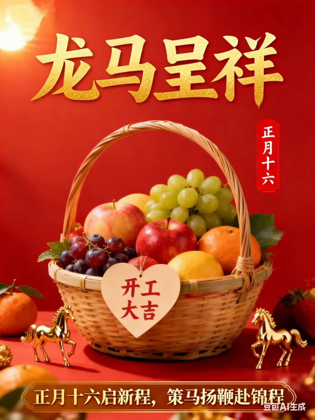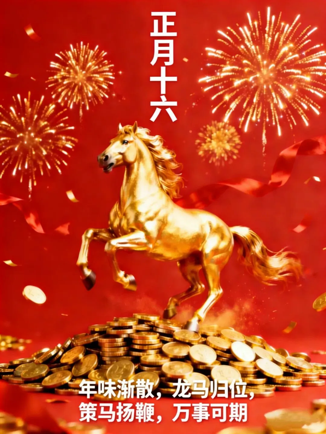 正月十六,喜迎朝阳,金鸡报晓,美好的一天又开始了。愿你财源广进如鱼跃龙门,健康长寿如松柏常青。祝你新的一年里,幸福满满,笑口常开,心想事成,万事顺利,新春快乐!
