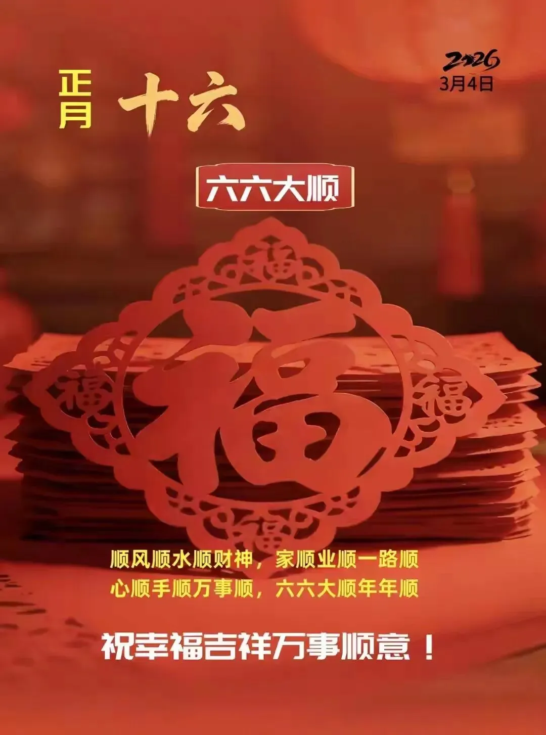 2026年3月4日正月十六精美祝福图片 正月十六祝福语 六六大顺