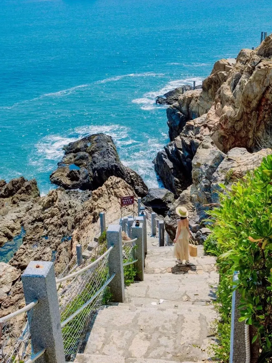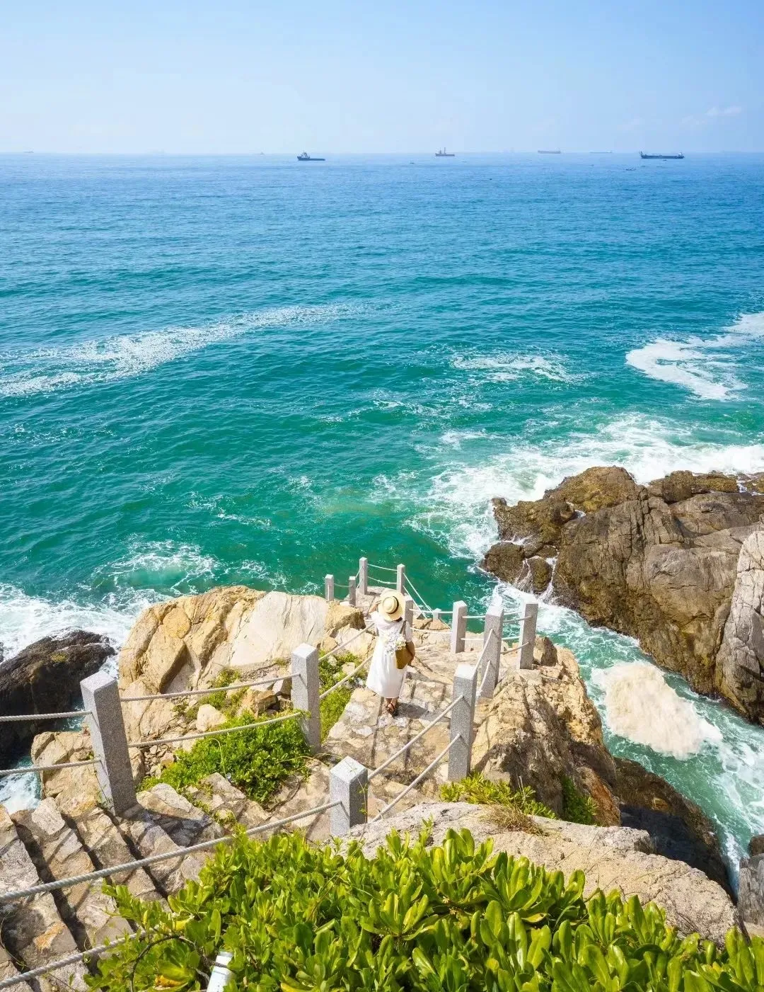超级出片的海边礁石栈道,便是坐落于此,你可以沿着栈道,一步步走向大海,看浪涛拍打在身旁的礁石上,激起洁白的泡沫,格外地震撼人心。