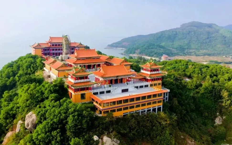 途径车观【珍珠湾】这里以其宁静的渔港和浪漫的小镇氛围而闻名,抵达东平镇“阳江小故宫”【悬崖古刹-----飞龙寺  游览约40分钟】位于广东省阳江市阳东区东平镇的玉豚山上,是一座海边的悬崖寺庙,始建于宋朝,距今已有1000多年的历史。于2019年新建,按照粤西佛教文化中心的规模来打造,占地面积约20万平方米,主体建筑寺庙建筑风格仿古,结合了中国传统建筑的魅力。