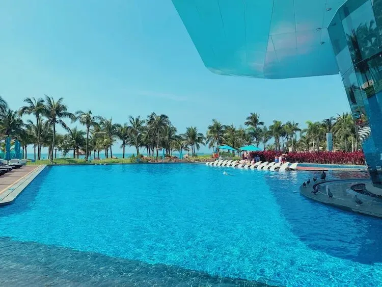 拥抱北纬21°的温柔怀抱,这里气候温润如三亚,却独享一份难能可贵的宁静。海风轻拂,带着丝丝和煦,每一次呼吸都仿佛能洗净尘嚣。眼前,是无垠的碧波荡漾,湛蓝的天与海交织成一幅令人心旷神怡的画卷,静谧而壮阔,是心灵休憩的理想之地。
