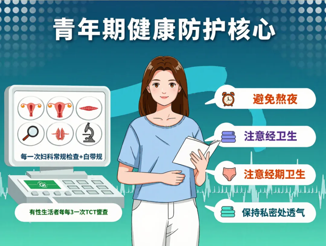健康要点:避免熬夜、过度节食(易导致内分泌紊乱);注意经期卫生,拒绝不洁性生活;少穿紧身裤,保持私密处透气 —— 这也是重医附三院妇科专家强调的 “青年期健康防护核心”;