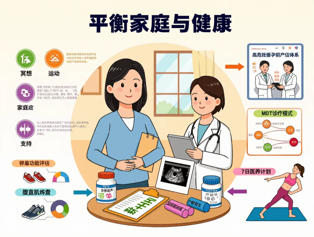 核心检查:每 2 年 1 次 TCT+HPV 联合筛查;每年 1 次乳腺超声(40 岁以上加做钼靶);备孕前做卵巢功能、甲状腺功能评估(借鉴重医附三院 “高危妊娠孕前评估体系”);产后 42 天必做盆底肌 + 腹直肌筛查(参考安琪儿 “医疗级产后康复标准”);