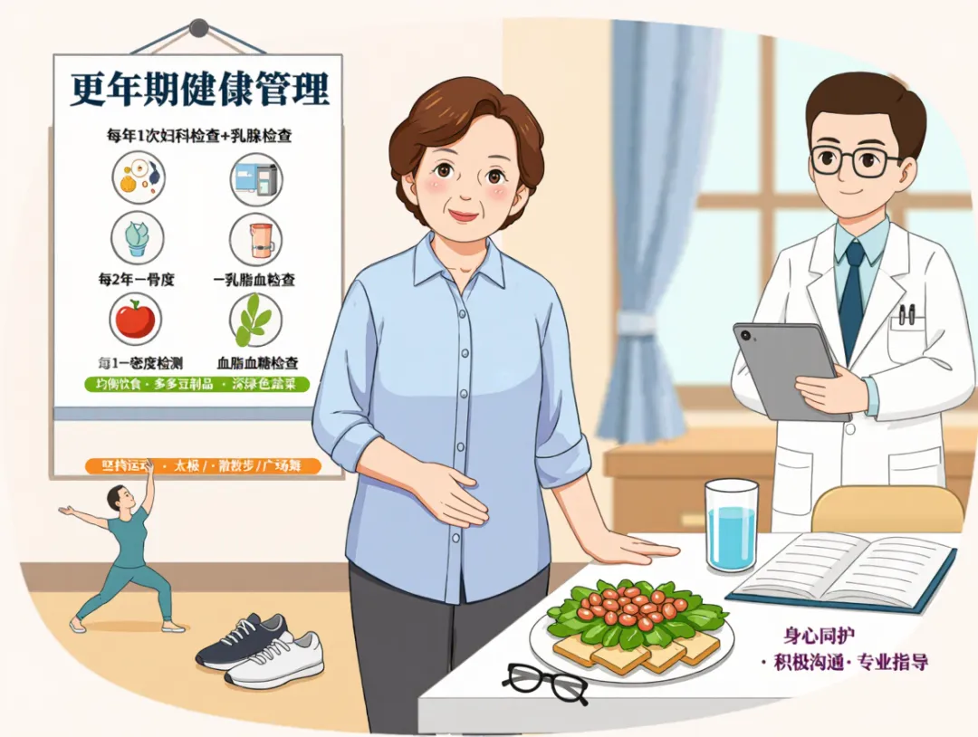 心理疏导:更年期是正常生理阶段,无需焦虑自卑,多与家人沟通,培养兴趣爱好,保持积极心态,必要时可寻求医师的专业指导,正如两家医院都强调的 “身心同护” 理念。