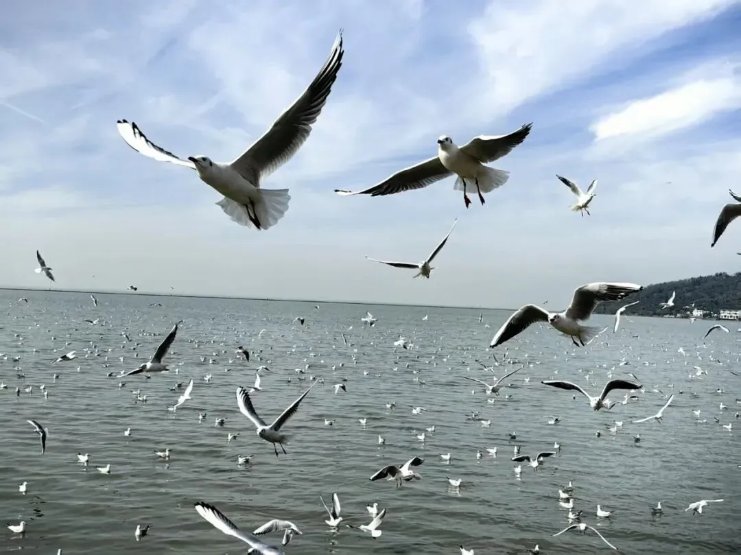 2. 渔港村:红嘴鸥超多,贴近水面互动