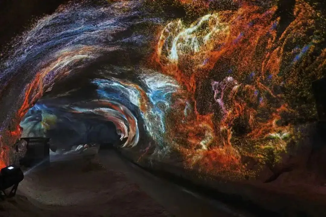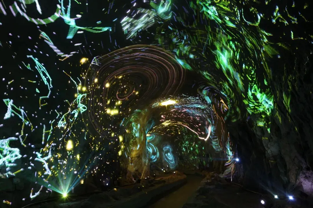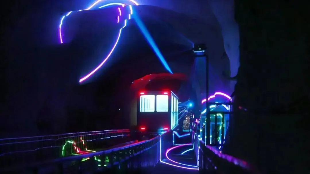时空隧道:穿越858米声光电交织的时光隧道,五大灯光特效区轮番变换,在矿洞深处领略速度与激情,开启一场视觉与感官的奇幻之旅。