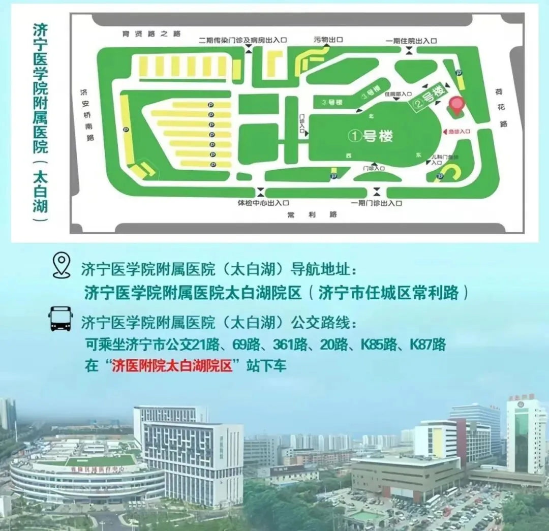 • 地址:济宁医学院附属医院(太白湖院区)1号楼1楼西首