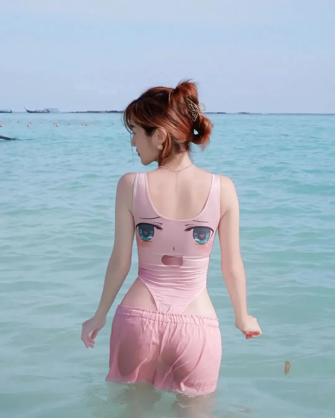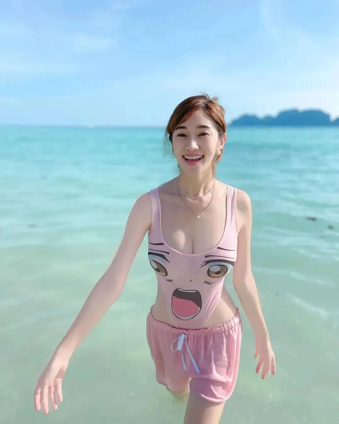 颜值Cos|动漫泳衣元气甜妹,碧海蓝天笑容超治愈