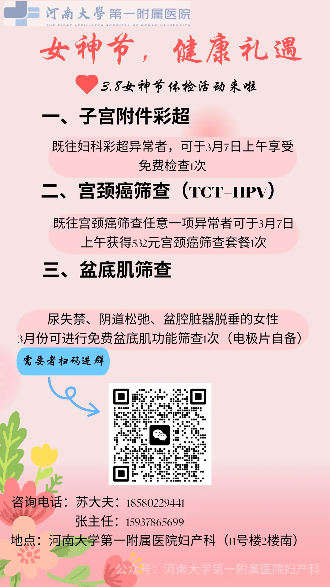 当前位置:首页>美女资讯>女神节,健康礼遇.河南大学第一附属医院妇科3·8女神节关爱行动开始啦!