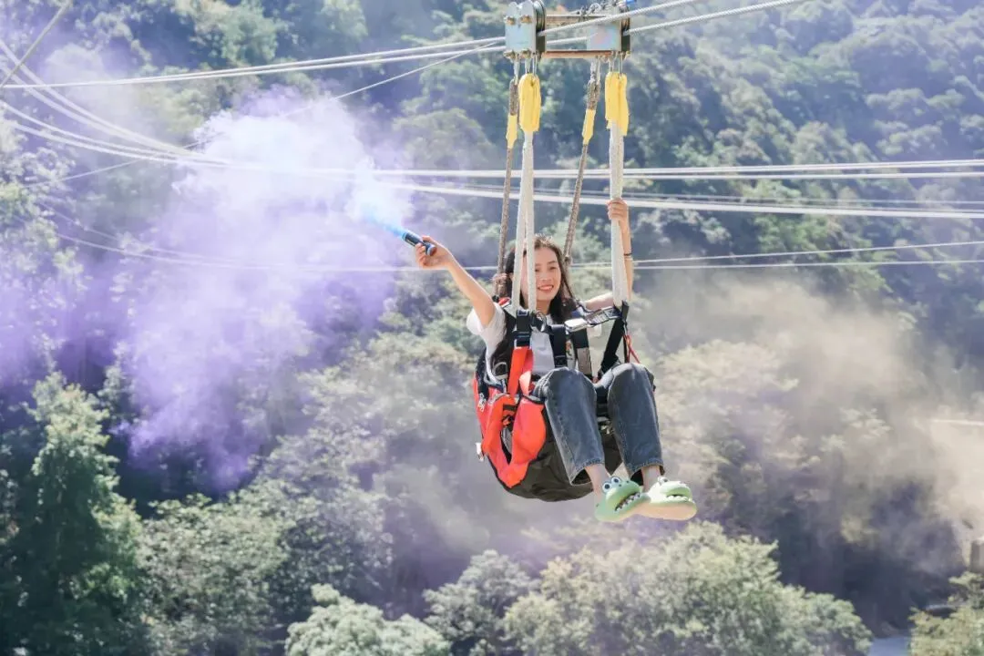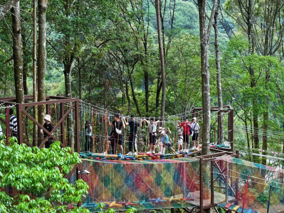在挑战这些高空项目的过程中,你会不断突破自我,感受心跳加速的快乐。巾帼不让须眉,你就是最酷的山林女王。每一次的挑战都是一次成长,让你更加自信和坚强。而且,在挑战的同时,你还能欣赏到森林的壮丽景色,那连绵的青山、茂密的树林,就像一幅巨大的绿色画卷,让人陶醉其中。这种将刺激与美景相结合的体验,绝对会让你终身难忘。