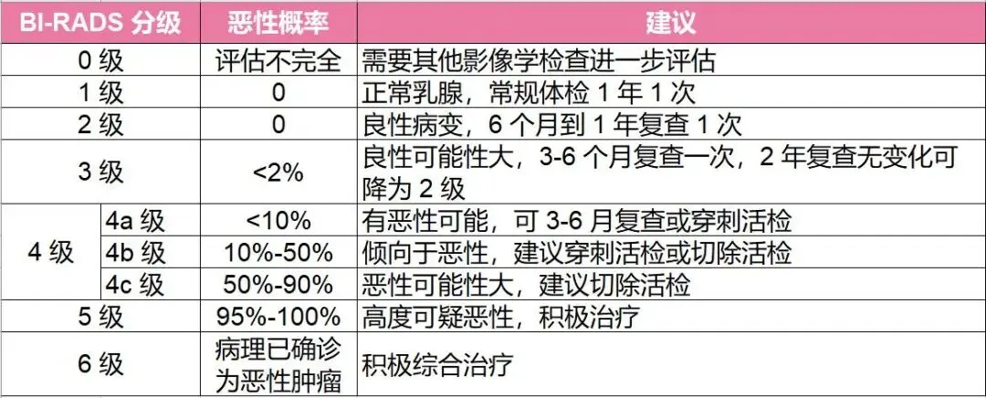 临床上,乳腺超声会将结节分为 6 个等级,1、2、3 类基本以良性为主。