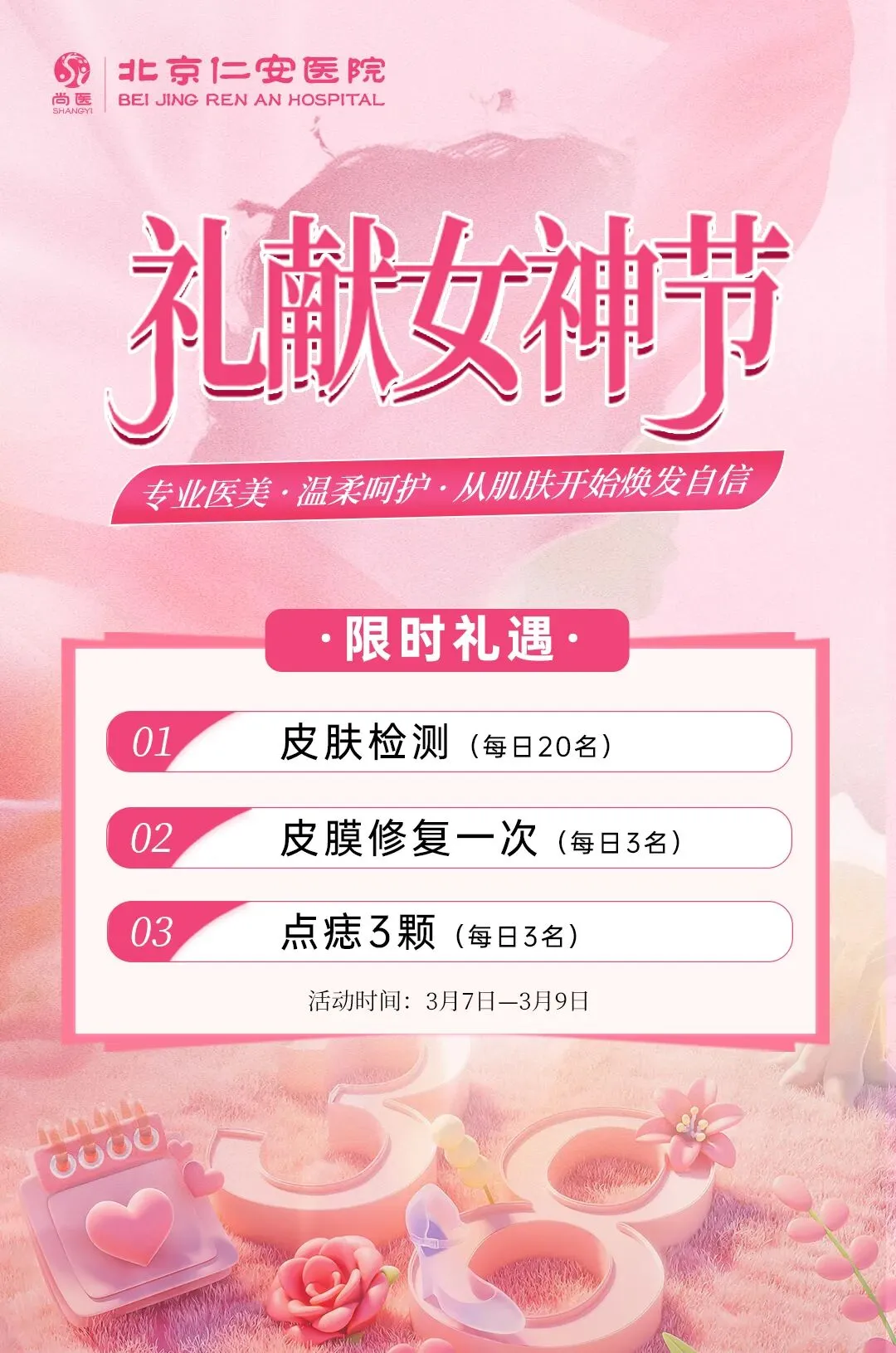 女神节专属美肌礼遇:皮肤检测、皮膜修复、点痣,限量领取!