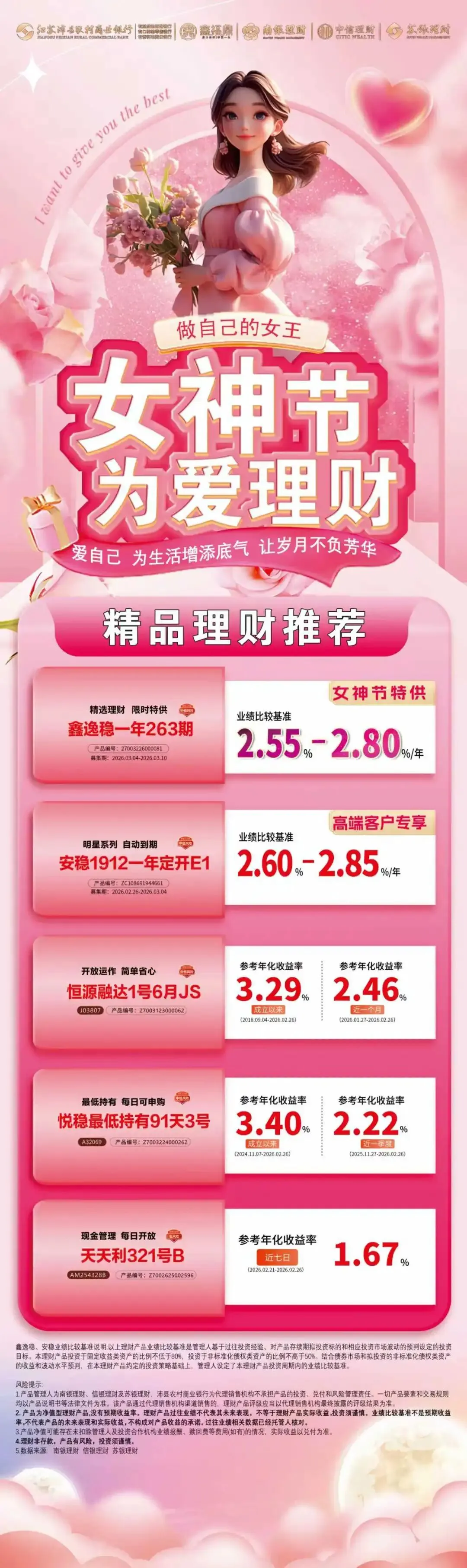 当前位置:首页>美女资讯>女神节 “财” 华上线!这份理财清单,让你美到发光又赚到开心!