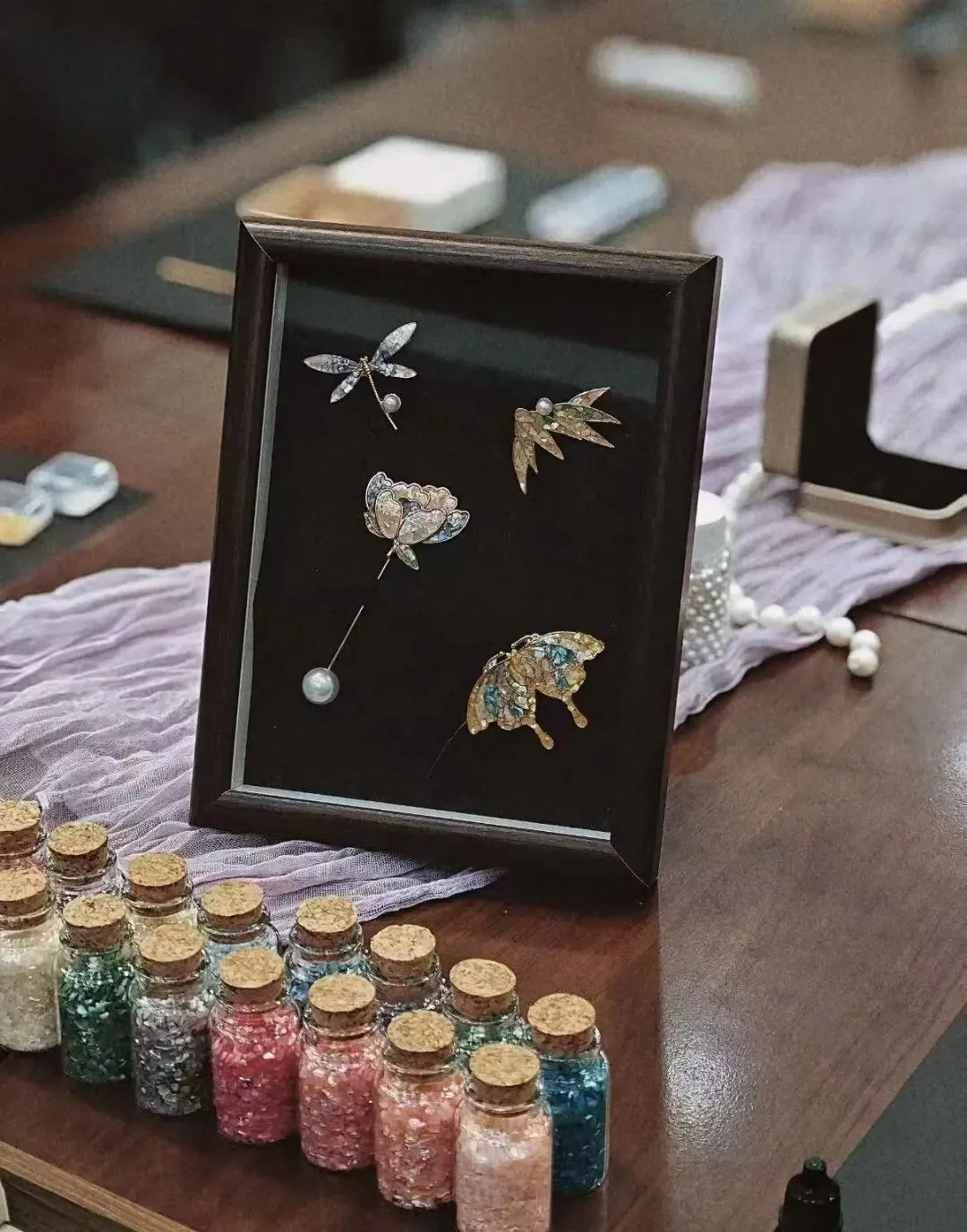重磅福利:春日胸针DIY手作。专业老师现场指导,七彩的螺钿随心搭配,指尖流光溢彩的星海,亲手打造一枚独属于你的春日胸针!感受中国非遗手工螺钿饰品的魅力,将春日色彩与创意定格在方寸,可别在衣襟上点亮穿搭,也可包装成温柔礼物赠予闺蜜挚友,成品可免费带走,把春日美好珍藏!