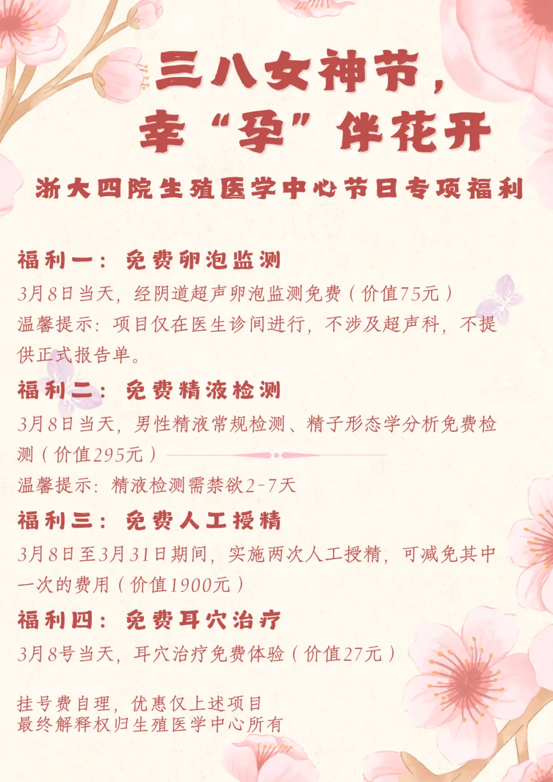 三八女神节,幸“孕”伴花开——浙大四院生殖医学中心节日专项福利