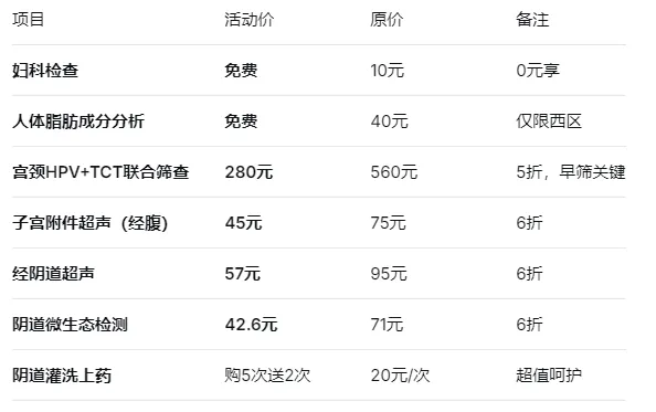 本次活动汇聚多项妇科健康检查与治疗优惠,以贴心价格呵护您的身心: